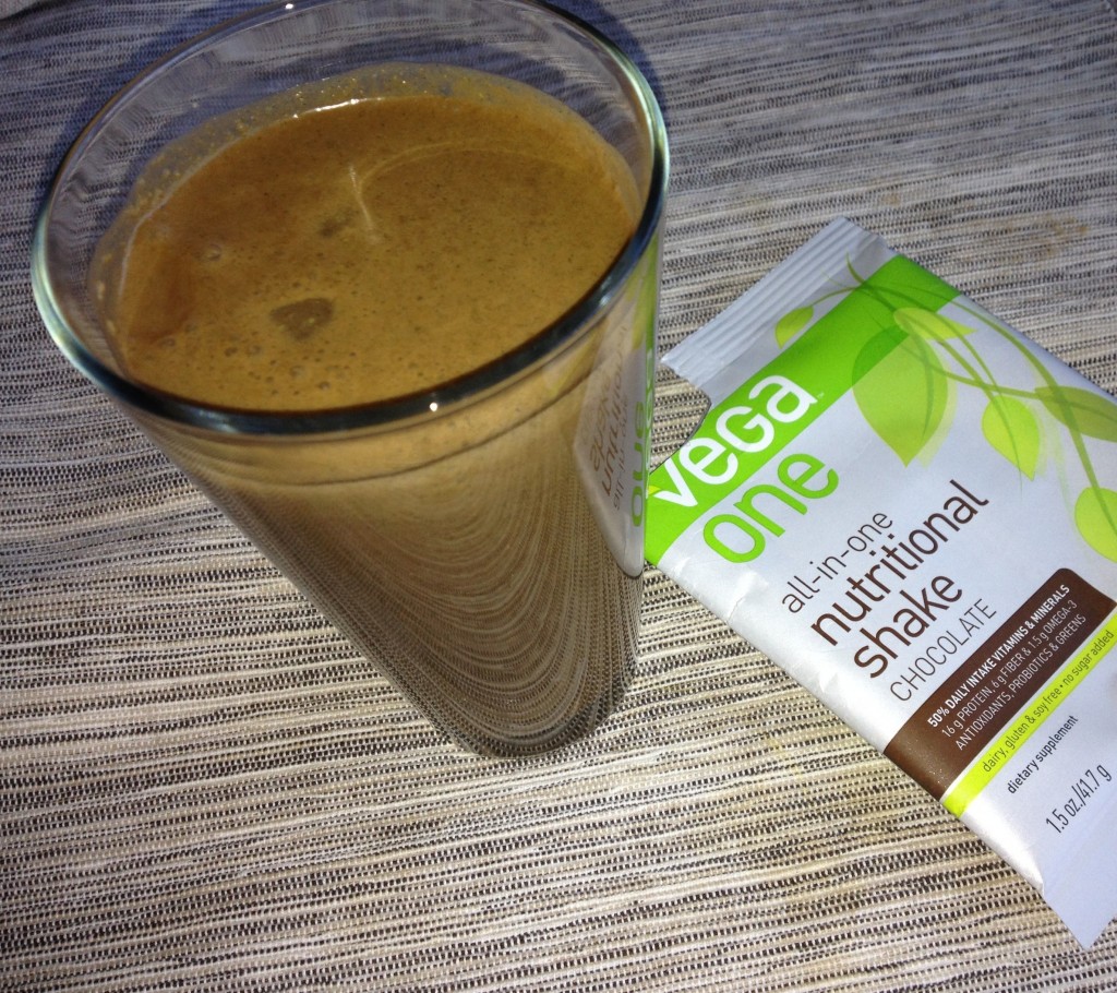 It even tasted kinda mealy and powdery. I gave it another shot though. I broke out the big boys (my Vitamixer!), added a cup of almond milk and a couple of cubes of ice for good measure. My result is below.